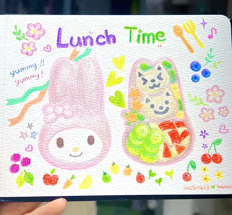 첫번째 그림은 아이들이 만들어온 귀여운 도시락을 그렸었는데요~ 두번째 도시락은 제가 만든걸로 그려보았습니다😄