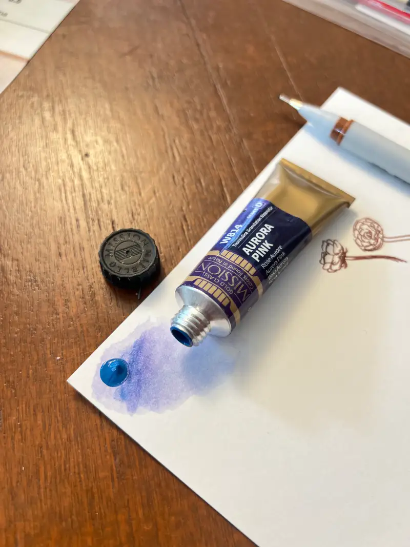 물감색 자체는 파랑색인데 녹여서 칠해보면 보라색과 핑크색이 나타나서 너무 신기하고 예뻤어요 ㅎㅎ 하늘의 진한 부분보다는 밝은쪽을 위주로 이 물감을 썼습니다~