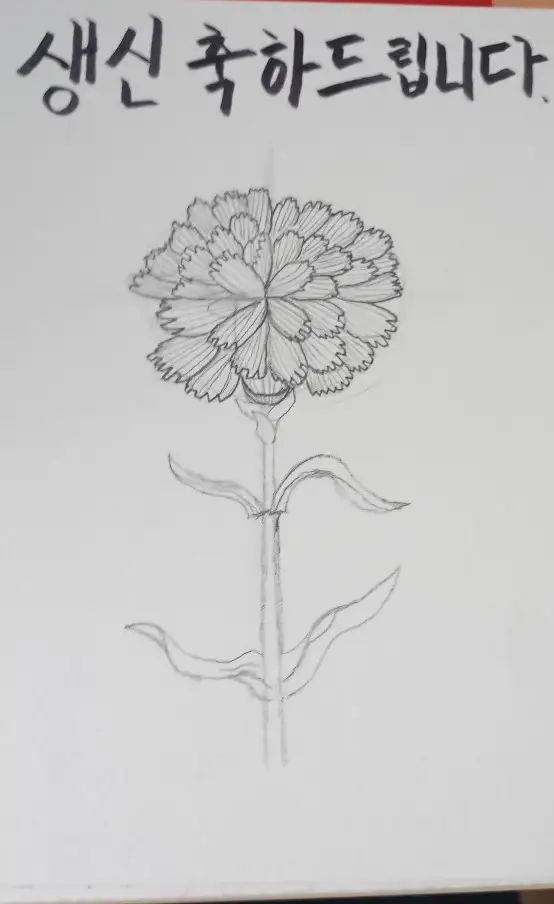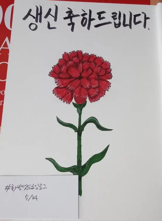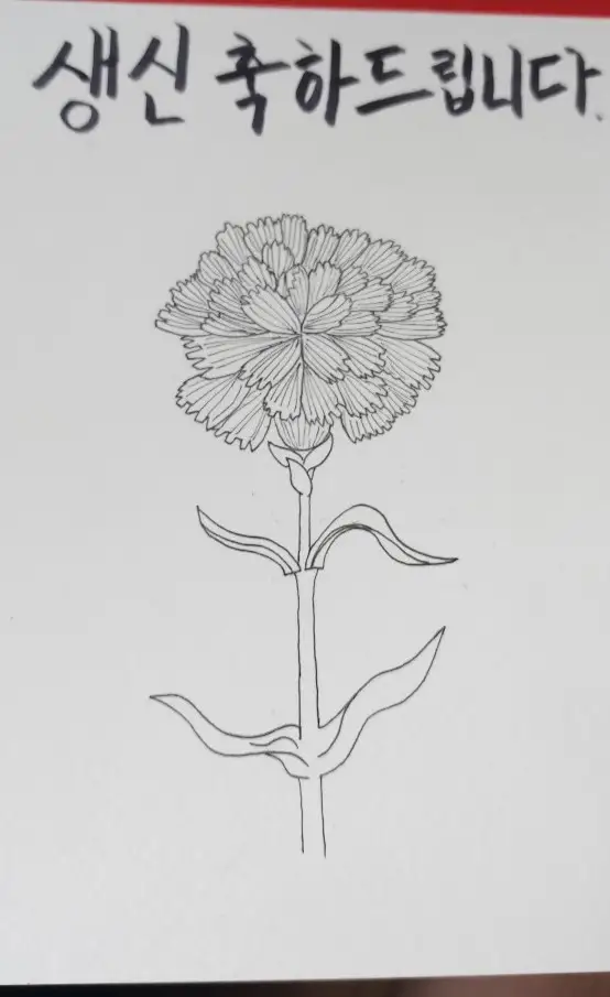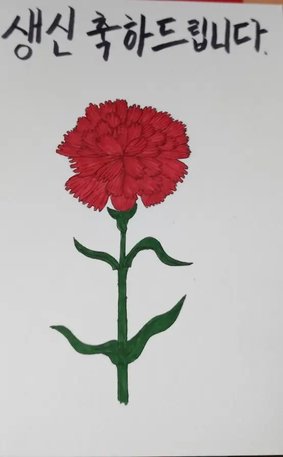 아빠가 생신이셔서 어버이날 기념, 생신기념으로 카네이션을 그려 선물해드렸습니다. 연필로 스케치하고 피그마펜으로 선을 딴 후에 오후후 마카로 채색했습니다. 색연필로 포인트 준 후에 마무리했습니다. 약간 초라하긴 하지만 그래도 만족스럽습니다^^