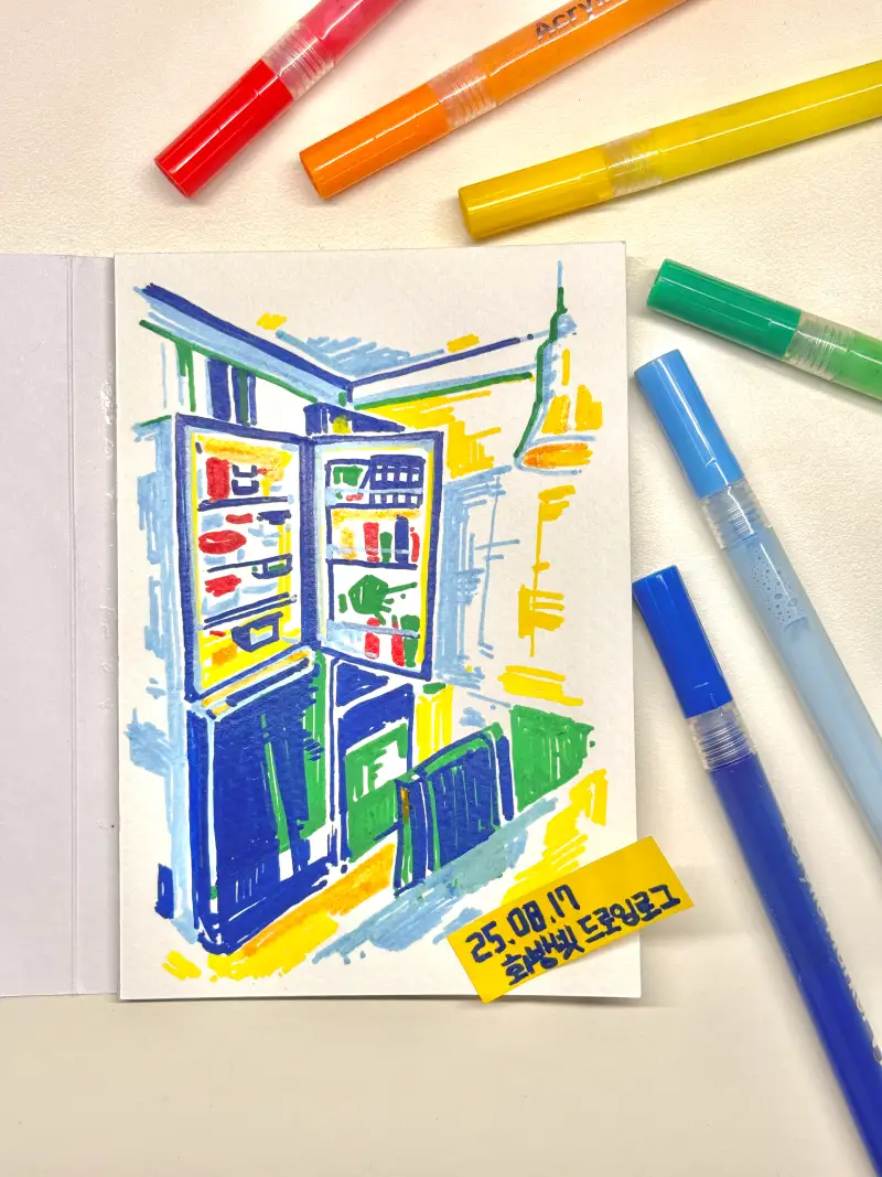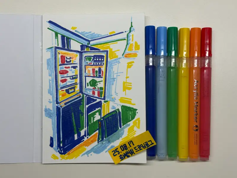 아크릴 마카를 처음 사용해 그려봤는데요! 색을 칠하고 나서 바꾸고 싶으면 위에 덧칠하면 돼서 너무 편하고 재미있었습니다!