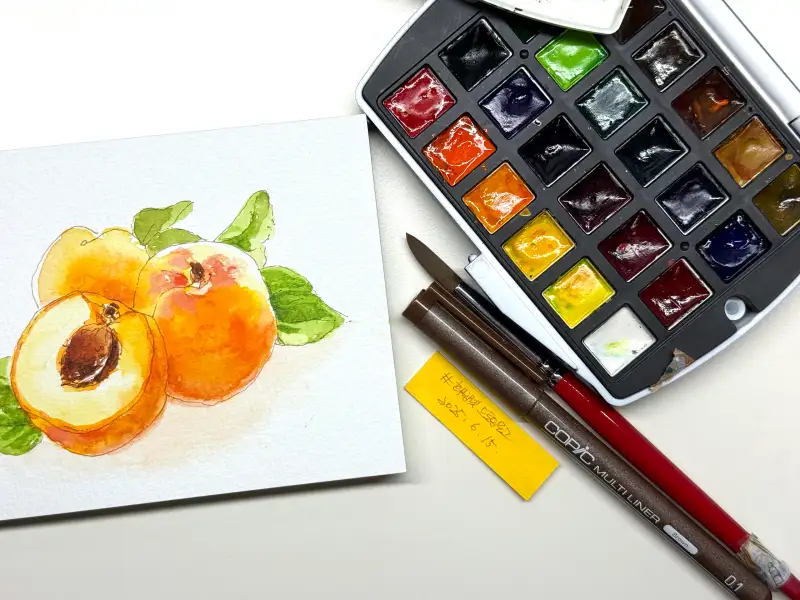 A6사이즈 엽서패드에 코픽 멀티라이너 0.1 브라운색으로 라인을 그리고 미젤로 고체물감으로 채색했습니다~!