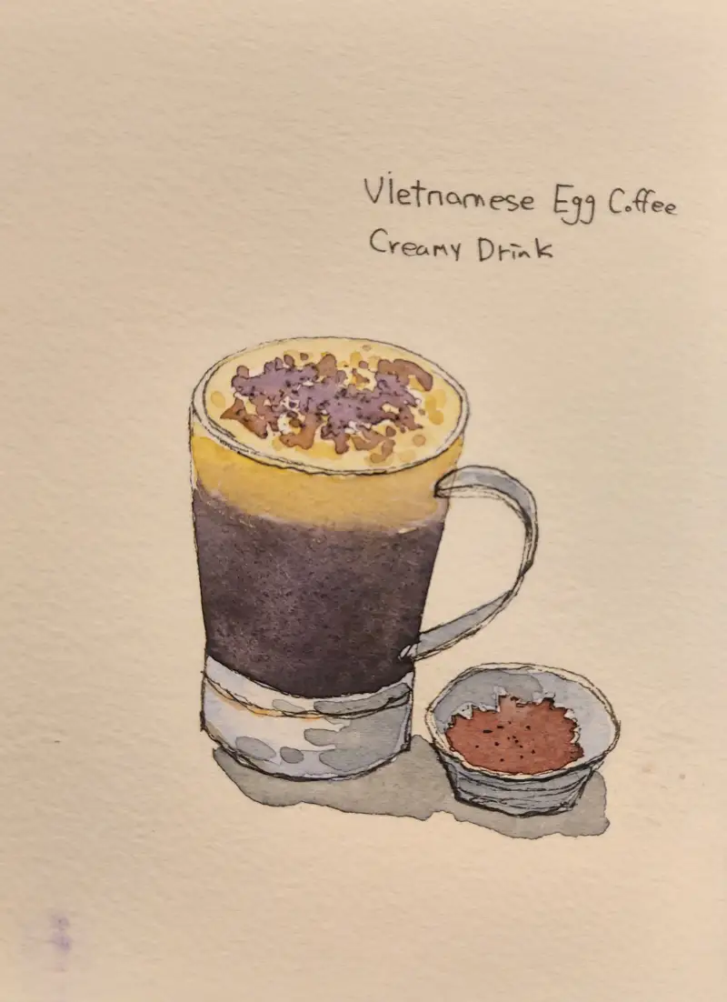 작년 베트남에 갔을때 맛있게 마셨던 에그 커피의 커피잔을 그려 봤습니다.