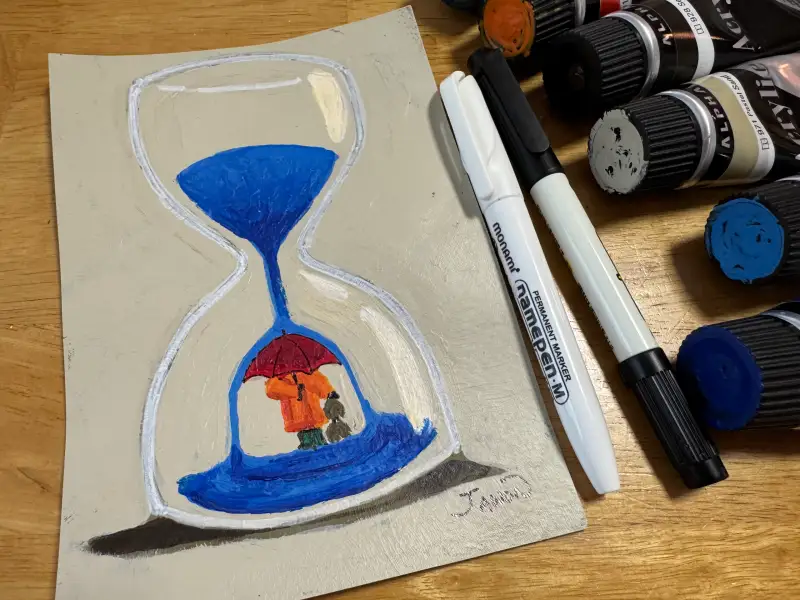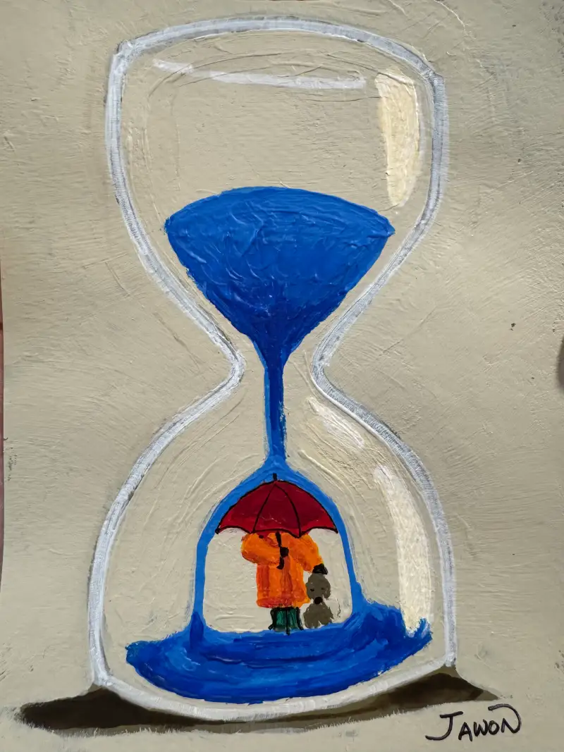 화방넷드로잉로그6기,3주차,반려견과 모래시계