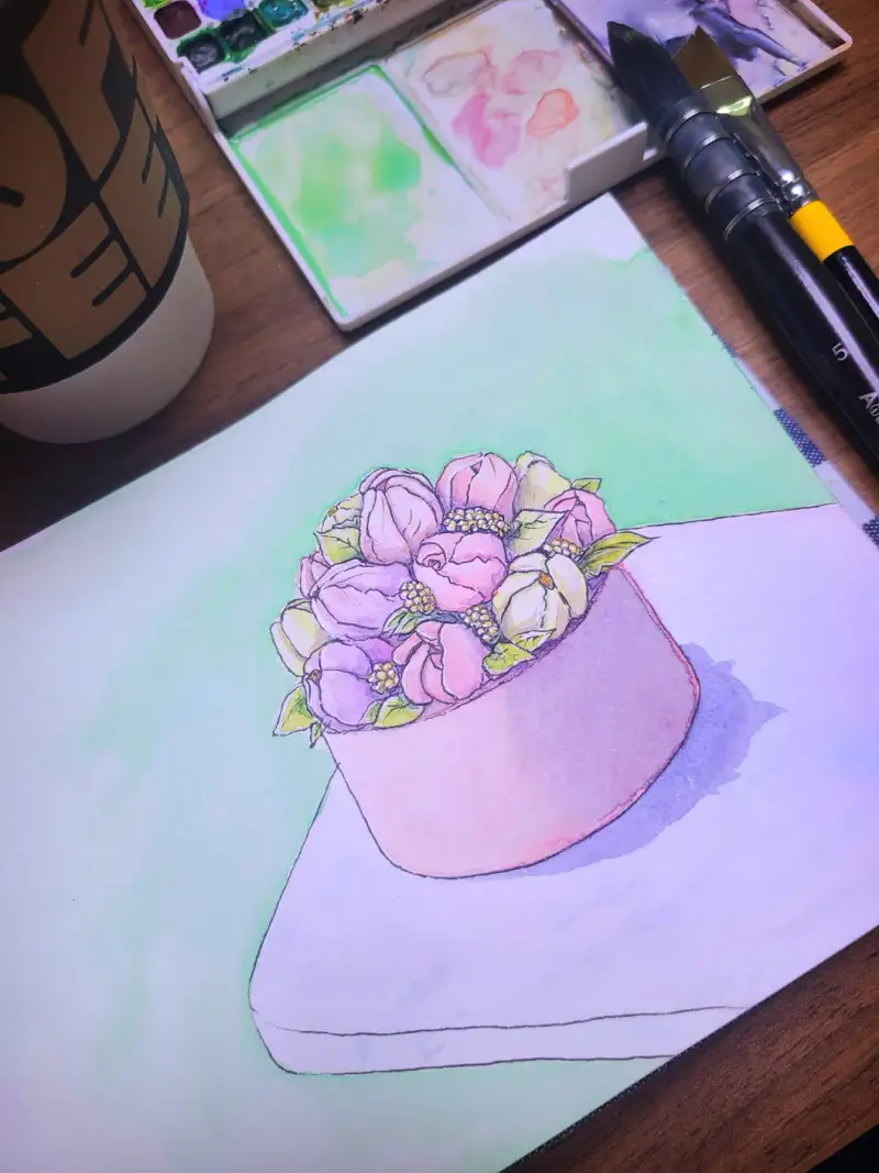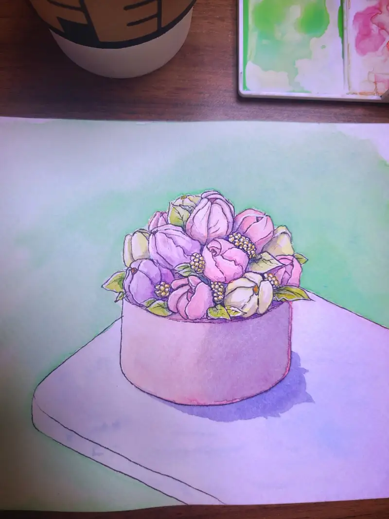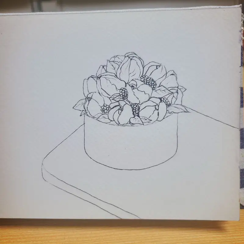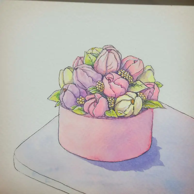 3주차 주제 첫번째는 꽃으로 장식이 되어 있는 케익을 그려봤어여~ 펜으로 밑선 그리기