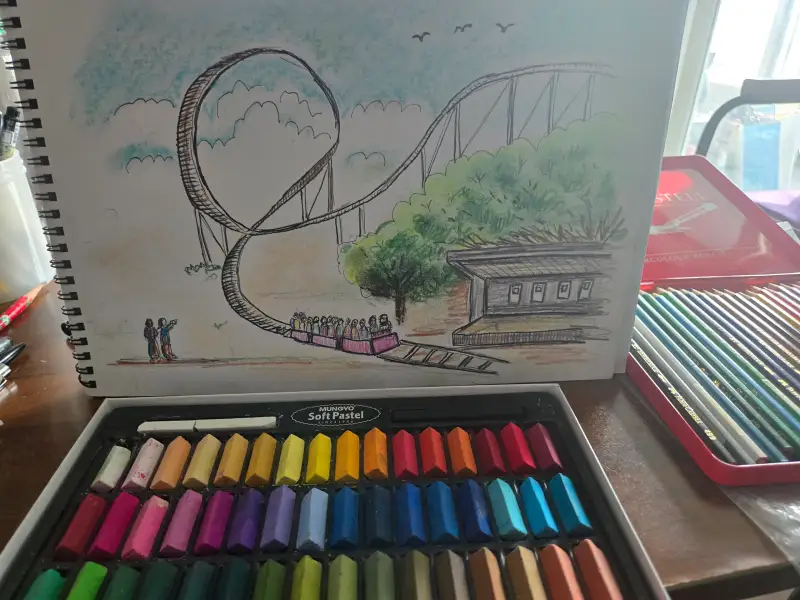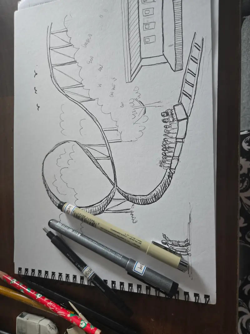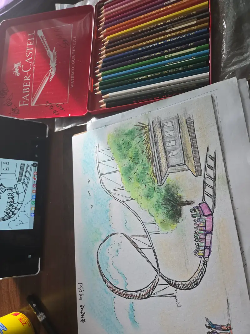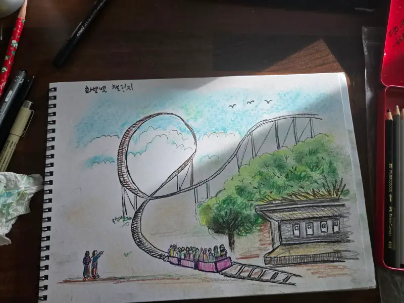 놀이공원 가면 제일 기슴 떨리는 롤러코스터, 예전의 그 기억을 되살려 그려봤네요