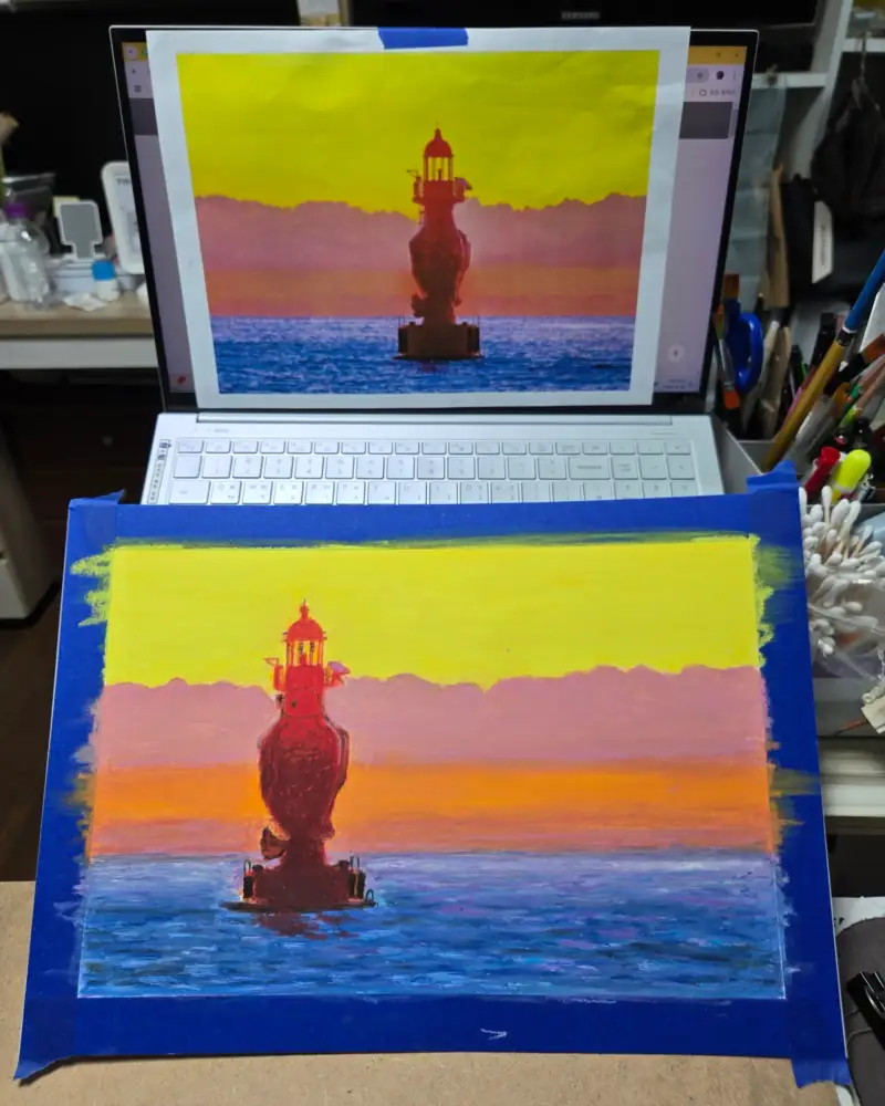 몇 년 전 보았던 동해 묵호 어달항 등대를  그려봤다.