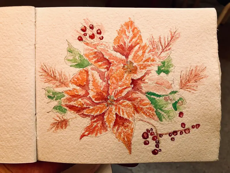크리스마스 트리 장식 오너먼트로 많이 쓰이는 포인세티아 꽃 그림 그려봤습니당~!