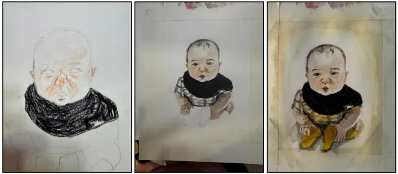 (12기는 문교 수채 크래용 - 부분 부분 다른 색으로 채색을 하고 물칠을 하면 그라데이션이 생기면서 자연스럽게 번진다.)