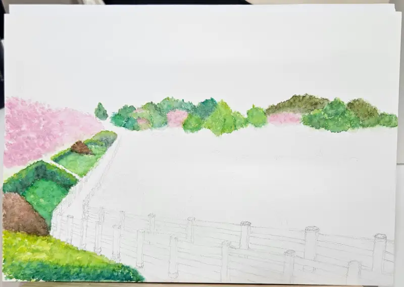 지금의 풍경이라는 주제에 맞게 여기저기 꽃이 예쁘게 피어서 뭘 그릴까 고민을 많이 했어요.