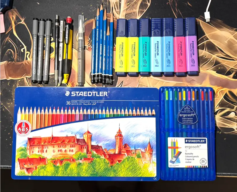 스테들러 색연필 36색 - 칠하고 바로는 약간의 수용성을 띠어 스테들러 워터 브러쉬로 스머징