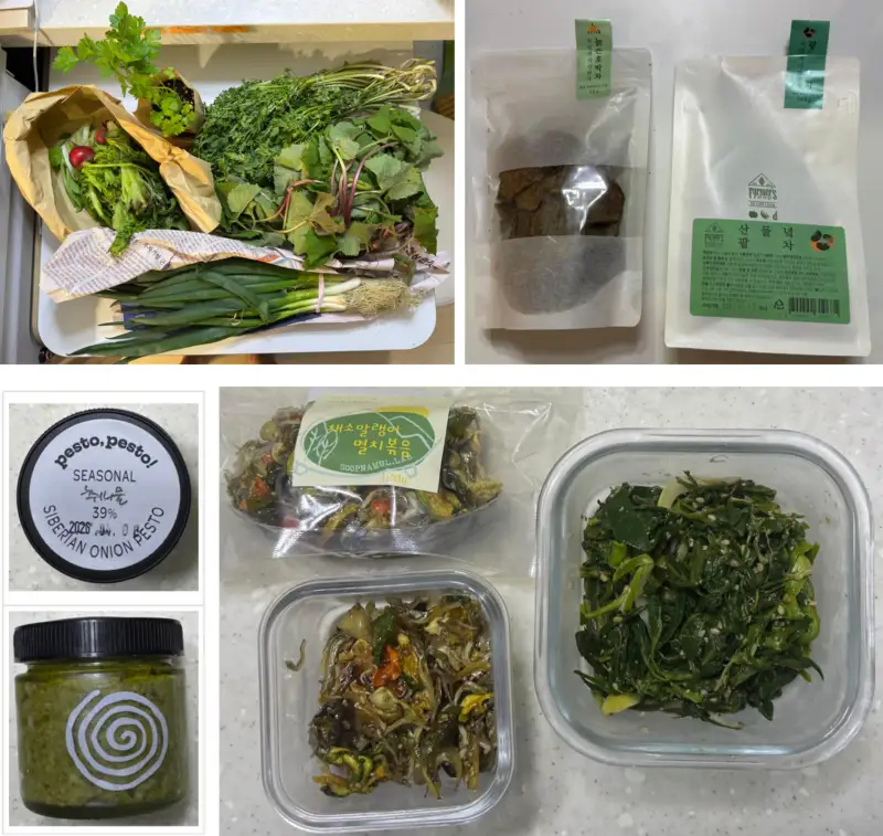 다양한 푸성귀에 건강차, 나물 등등 안 살 수가 없다.