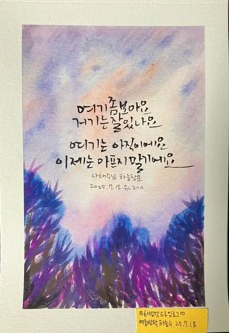 하늘을 그리고 나니 나태주님의 하늘창문이라는 시를 적어보고 싶었습니다.