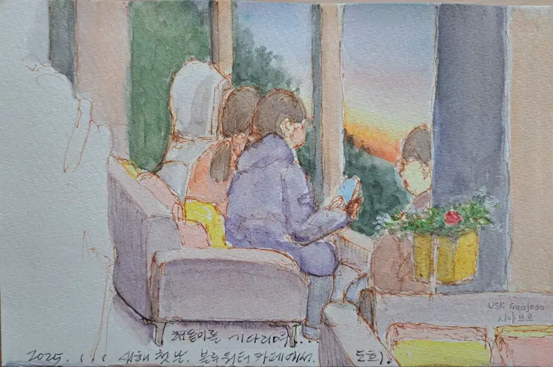 카페에서 해를 기다리며 주변 사람들을 그리다^^