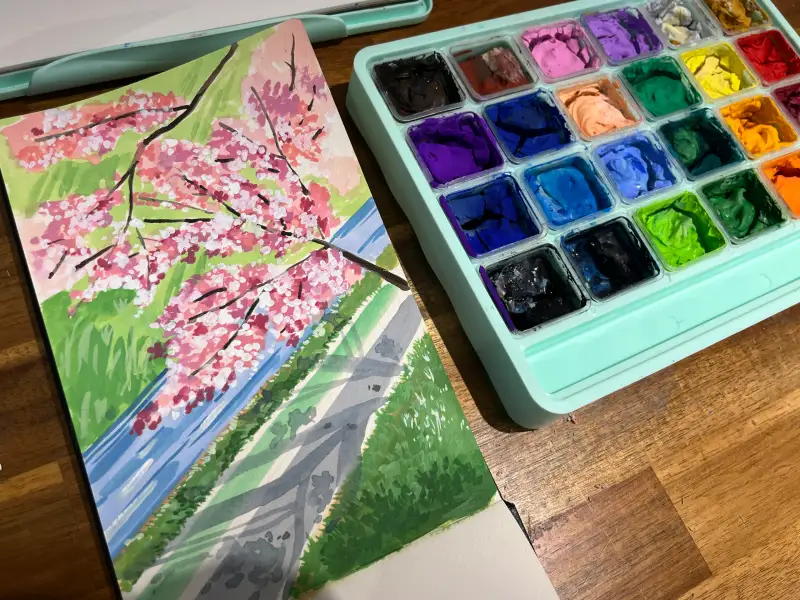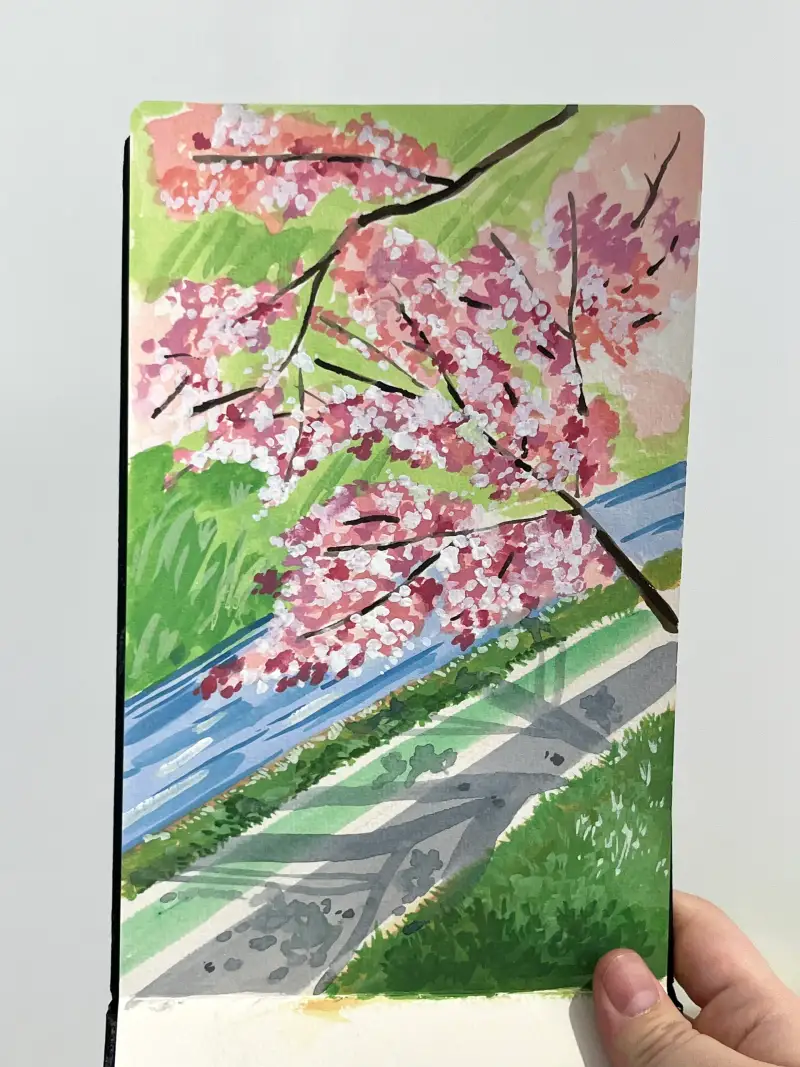 예전에 찍었던 벚꽃길을 그려봤습니다..
