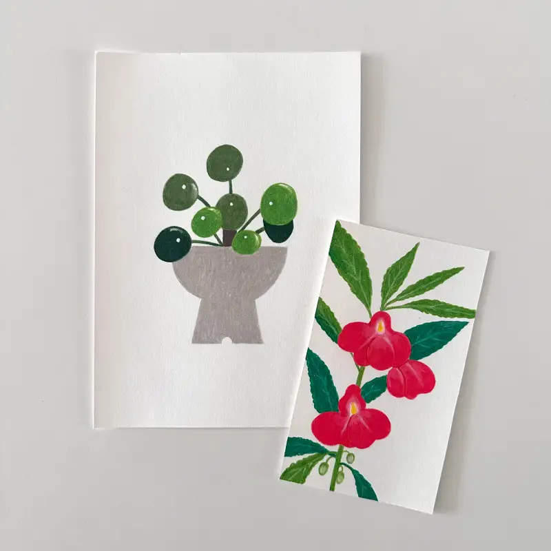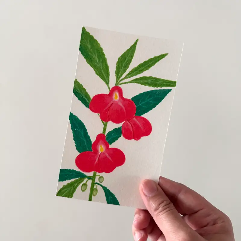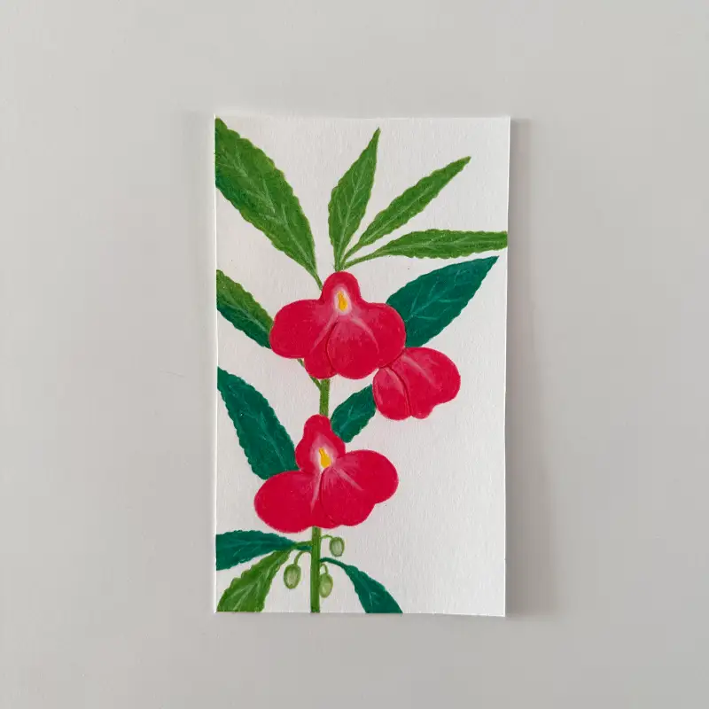 어릴적 여름이면 손에 물을 들이던 봉선화를 그려봤어요.