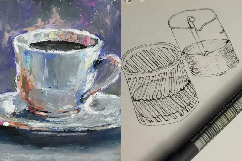 물컵 두 개가 놓인 걸 보고 낙서하듯 그렸습니다.