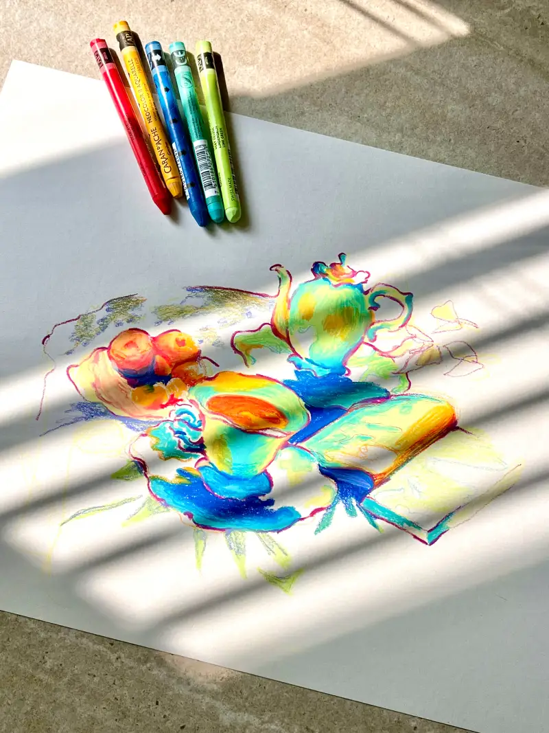 가을날 햇빛 가득한 정원에서 차 한 잔 하는 느낌으로 그려봤습니다