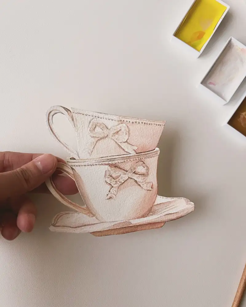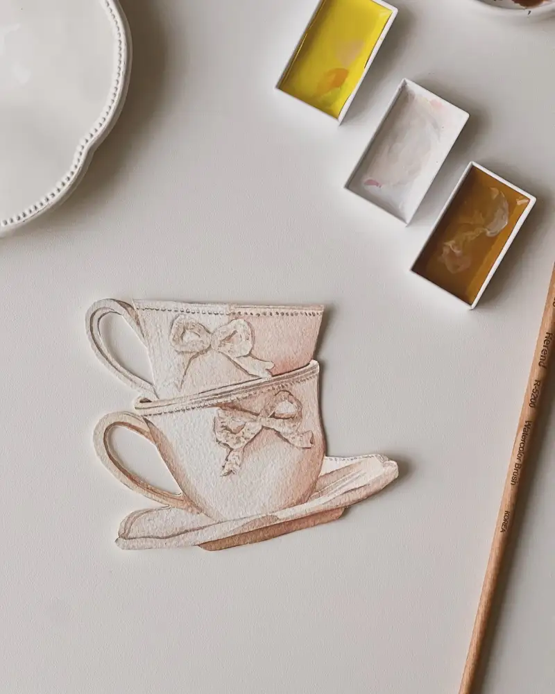 결혼선물로 받았던, 벌써 10년이 된 찻잔을 그려봤어요.