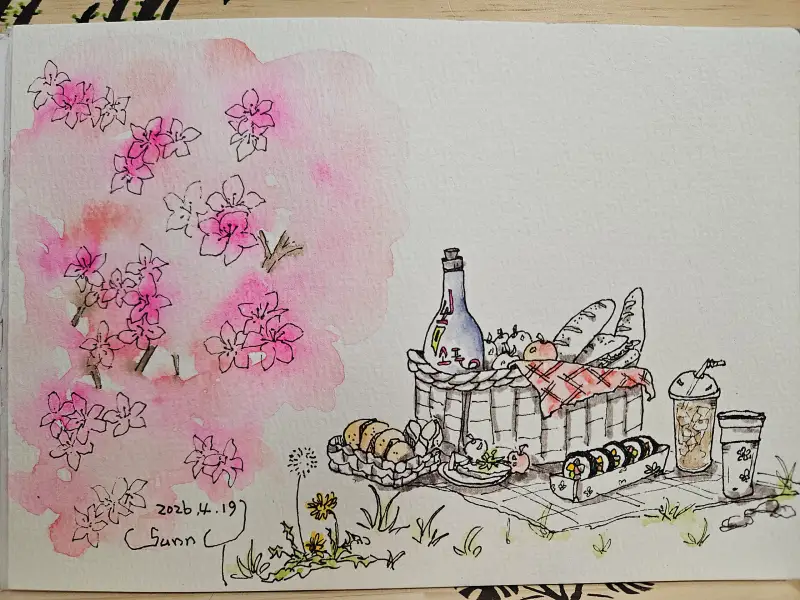여름날같은 봄에 흐드러지게 핀 벗꽃보며 김밥에 커피로 어릴적 소풍갔던 생각에 혼자 즐거웠다.