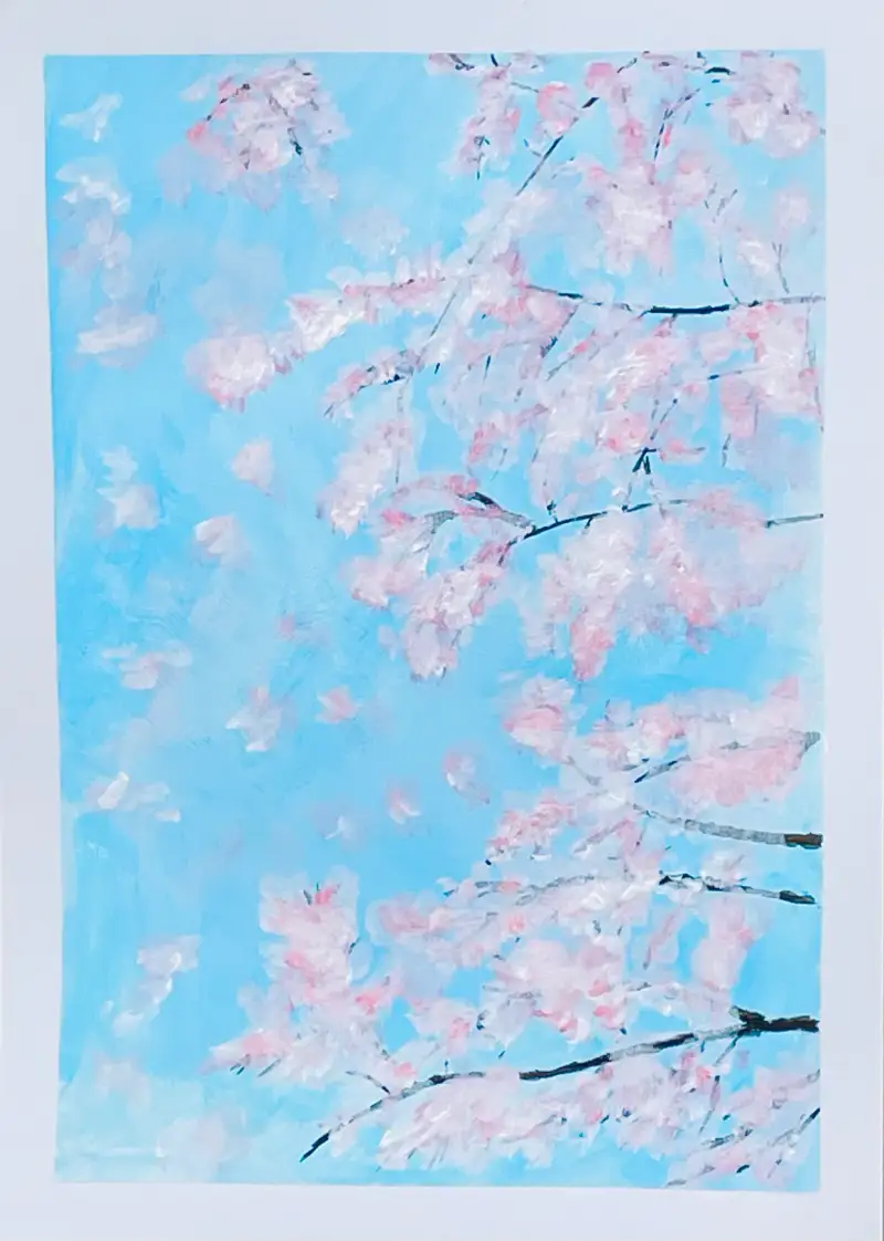 벚꽃 구경 하면서 하늘을 봤더니 벚꽃과 하늘이 너무 예뻐서 그려봤어요☺️