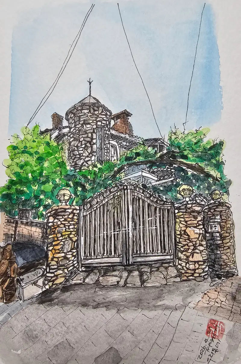 동네 뒷골목으로 가다보니 돌로 만든 집이 있어 특이해서 그려 보았습니다.