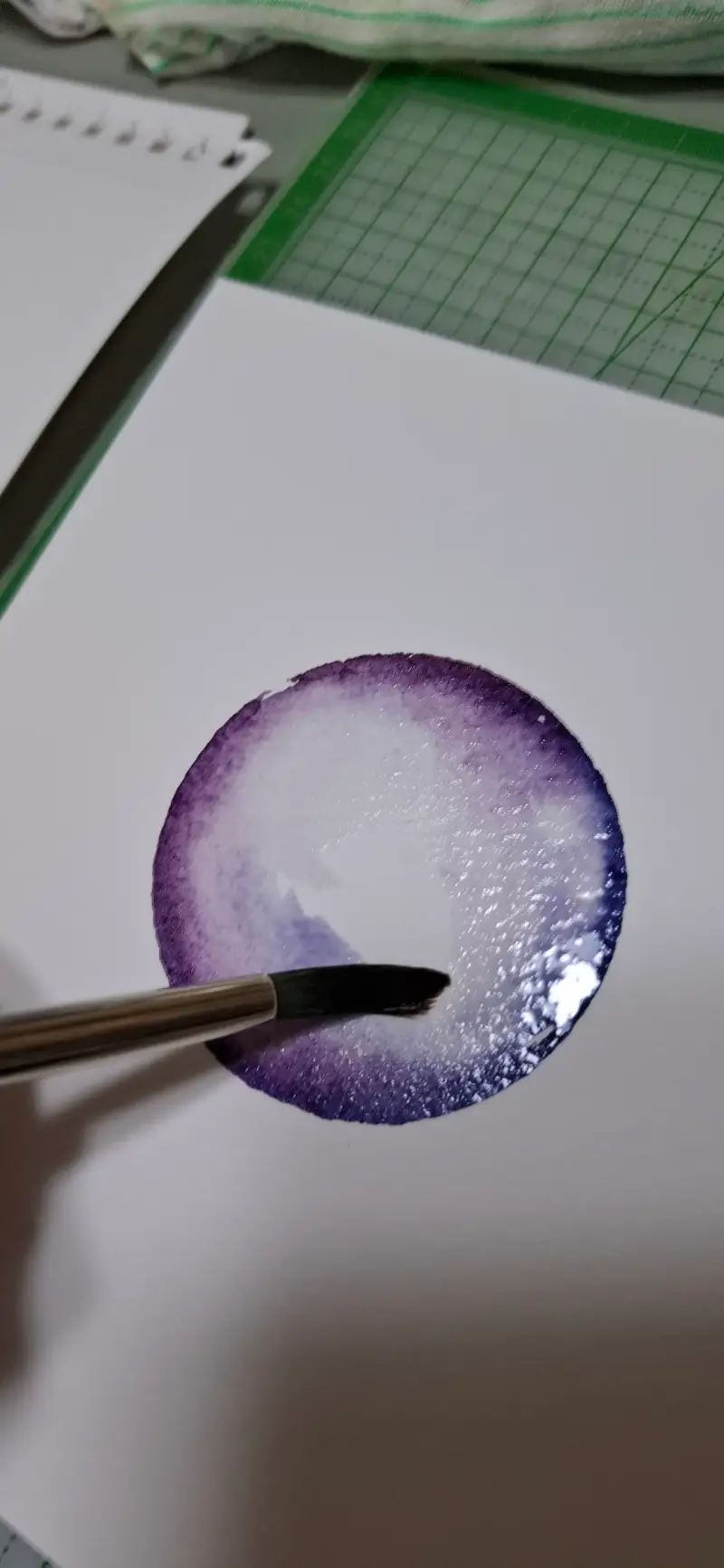 수채물감을 유리잔으로 찍어서 물로 번짐하면