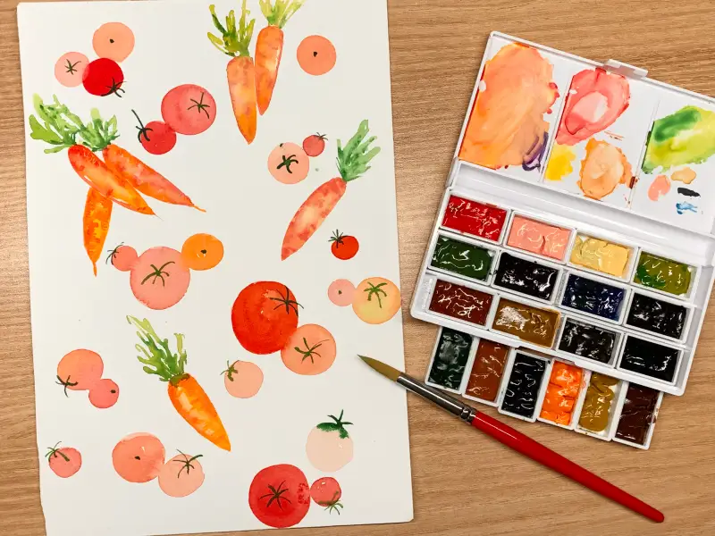 제가 구독하고 있는 외국 그림유튜브 채널을 보며 배운 것을 믹스해서 그려보았습니다. 이번 기회로 간단하게 방울토마토와 당근 그리는 방법을 배울 수 있었습니다:)
