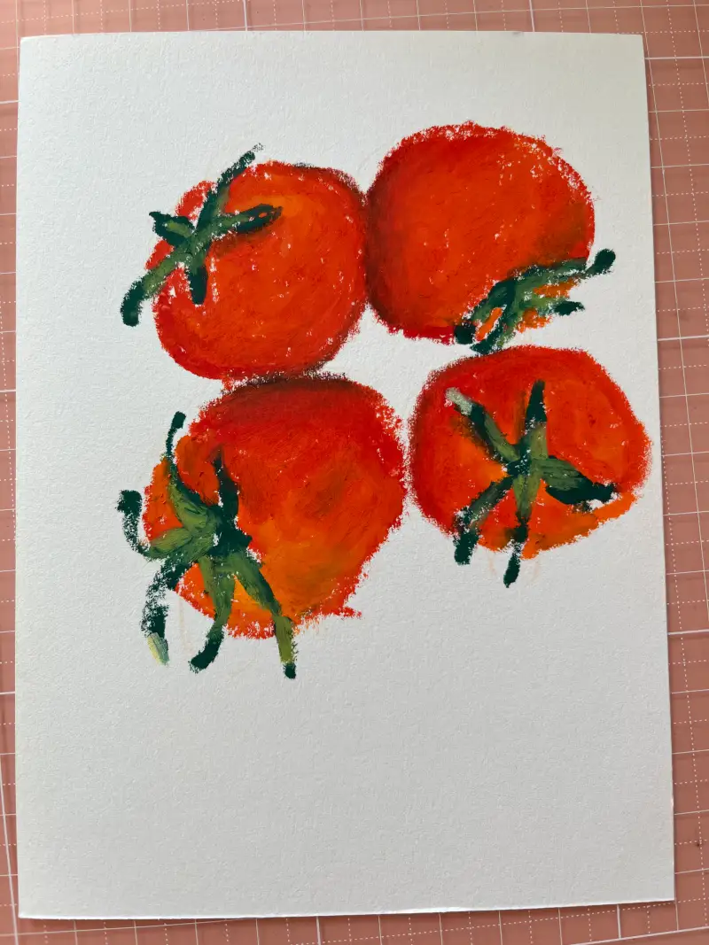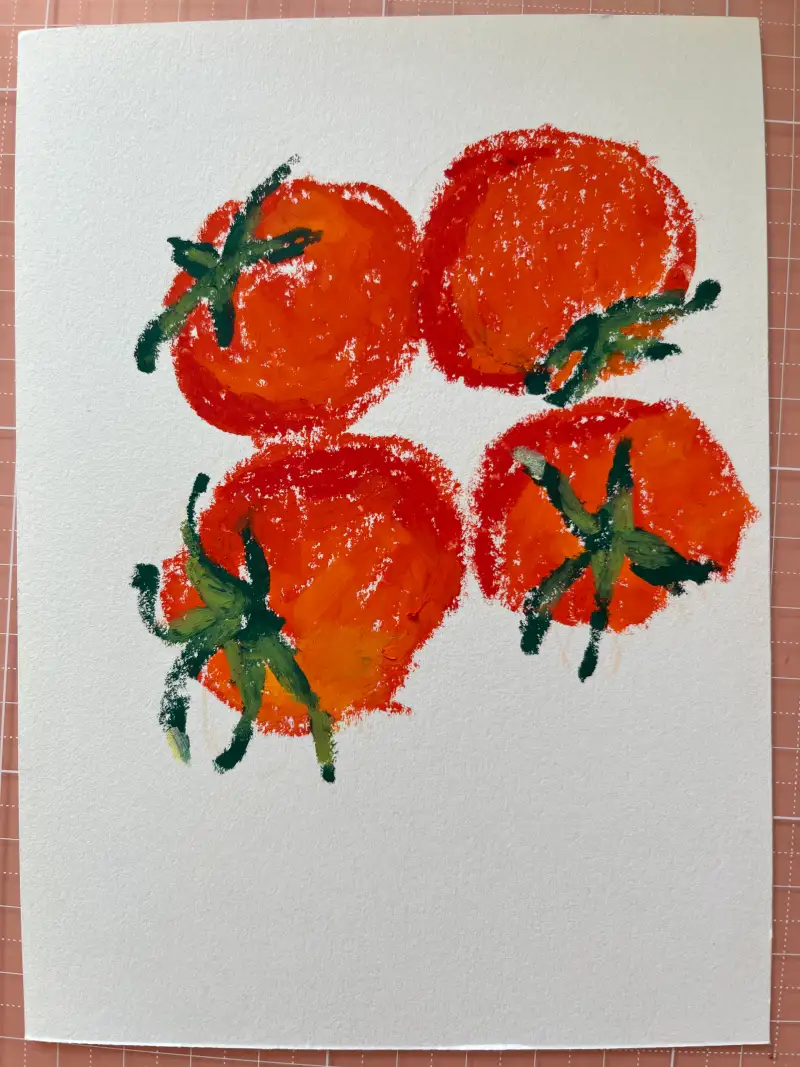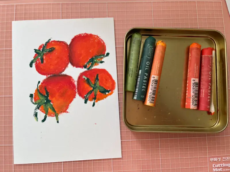 샐러드로 자주 해먹는 토마토를 오일파스텔로 그려봤다.