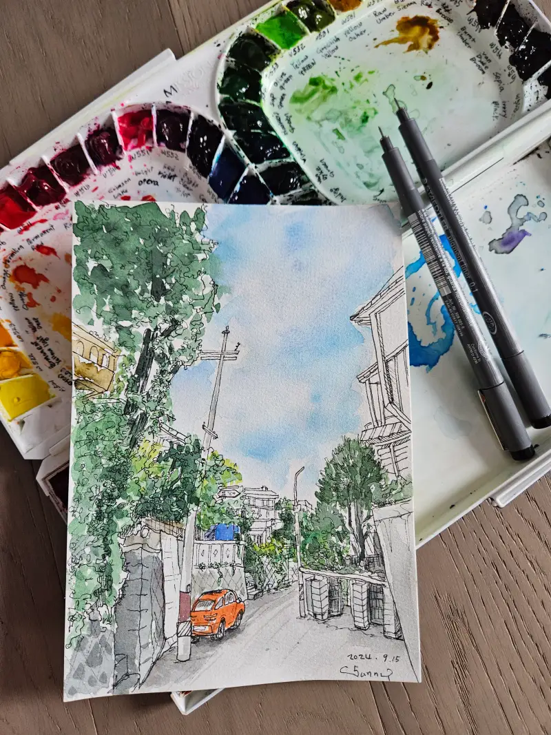 인천 긴담모퉁이 골목입구에서본 맑은 하늘입니다.