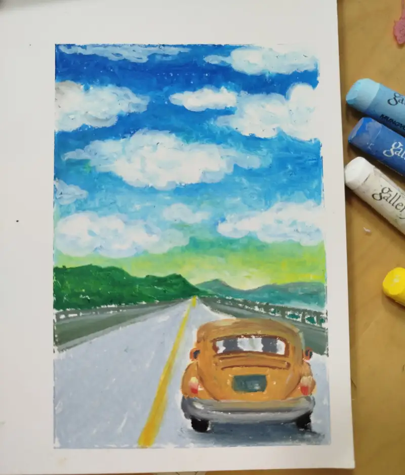 오일파스텔로 예쁘게 해보고싶었는데 쉽지않다.