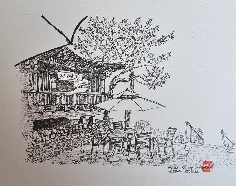 엄마 모시고 산정호수 한옥카페 다녀와서 채색은 안하고 펜으로만 해봤네요.