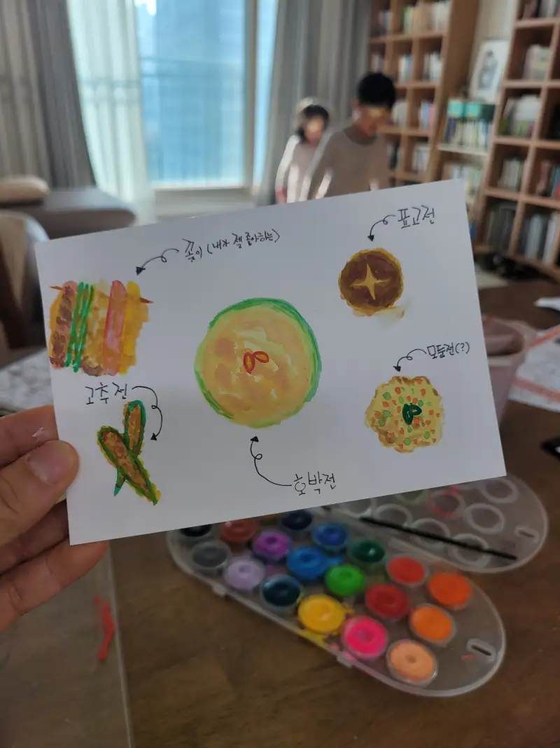 옆에 조용히 앉아 아이들 물감으로 그려 올립니다^^