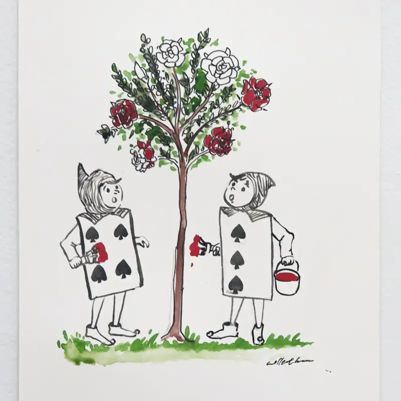 흰 장미를 붉은 페인트로 칠하는게 참 흥미로운 장면이었어요