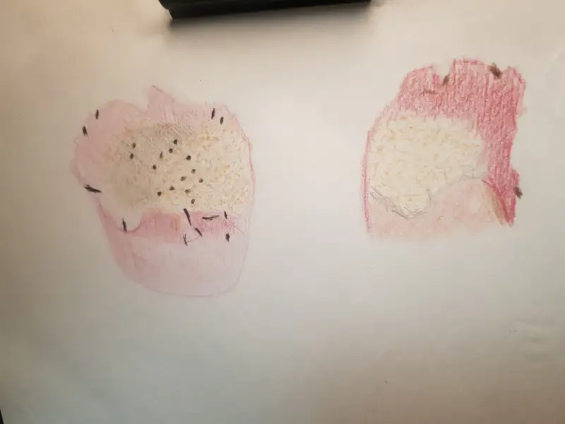 게다가 오른쪽은 먹고 난 후 흐르는 크림을 그려보려고 했는데 내가 봐도 형체를 구분할 수 없어! 분명 빛 때문에 하얗게 보이는 곳이나 그림자같은 디테일한 부분을 신경써서 그렸는데 결과는...!!