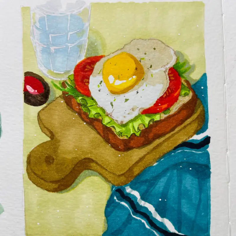 오후후 마카와 프리즈마 색연필로 그린 샌드위치입니다.