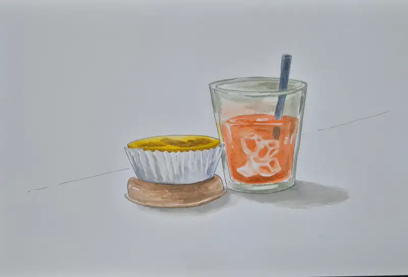 에그타르트와 자몽주스입니다. 주스 잔이 상대적으로 작아진것 같네요.^^ 재료는 수채물감입니다.