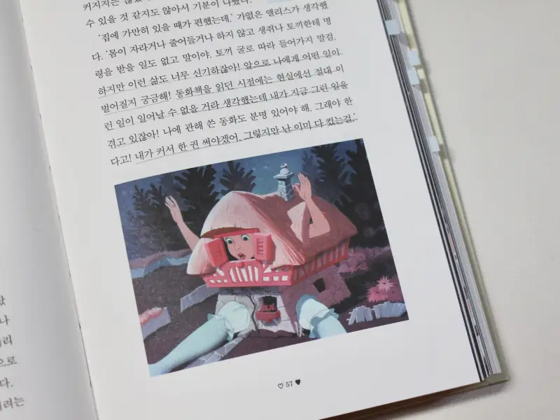이렇게 흰토끼 집에 끼인 앨리스를 그리니까 얼른 읽어보고 싶네요😀