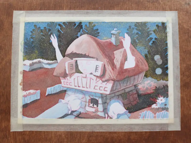 잉크로 표현하기 어려운 색은 수채화 물감으로 칠해주고 흰색 색연필로 밝음을 조금 더 찾아 줬습니다.
