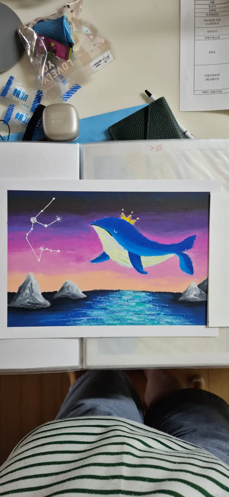오일파스텔로 고래를 그려봤어요...