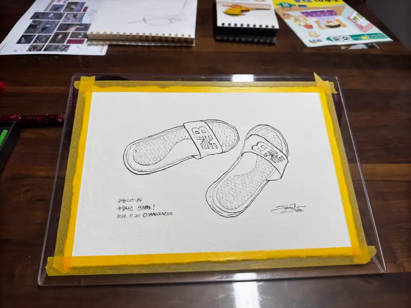 우선 드로잉요으로 사용중인 제브라 G닙 전용 만년필로 밑그림을 그려주었습니다. 채색을 디테일하게 하려고 하지 않아서...