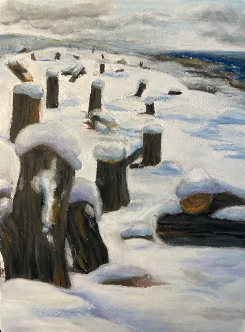 눈쌓인 바닷가를 밑그림으로 그리고,