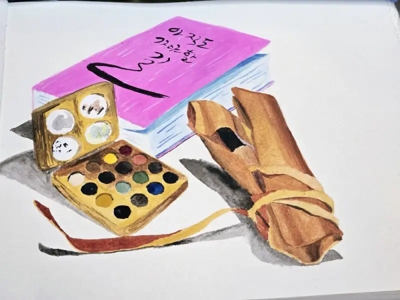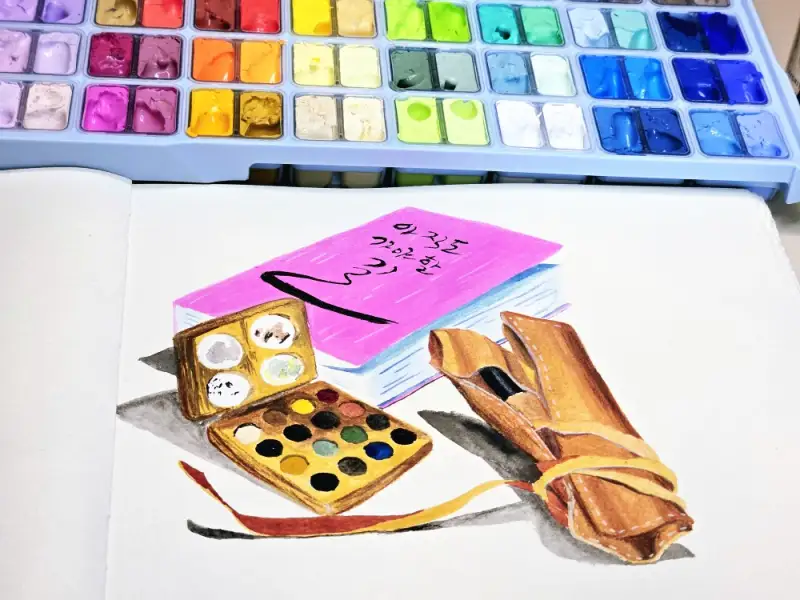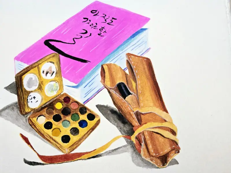 읽는 책 1권, 만년필 케이스, 휴대용팔레트(찰리팔레트)를 꼭 가지고 다녀요 ㅎㅎ