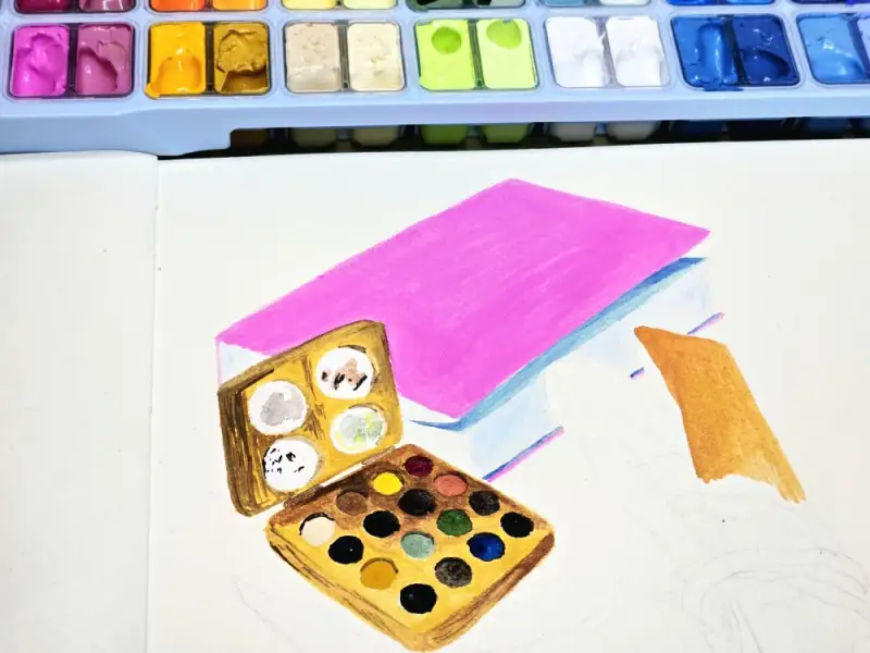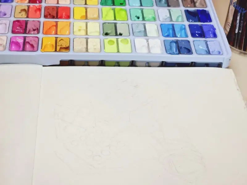 불투명하지만 물을 사용해서 수채화표현과 두껍게 올려 아크릴표현이 되기때문에 과슈 자체가 재밌는 재료인데, 젤리과슈라서 미끌하게 부드럽게 칠해져요!
