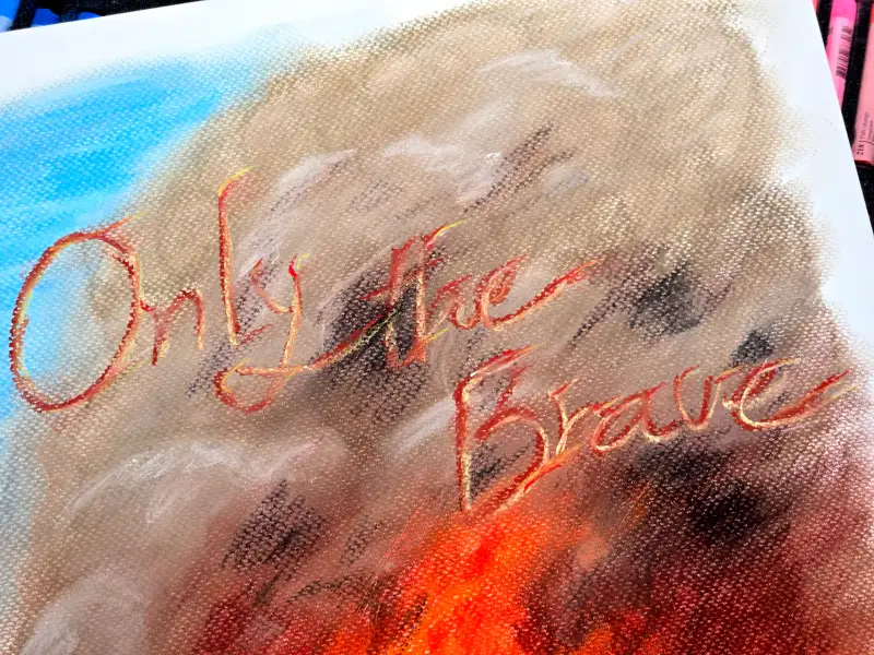 글씨는 불씨가 튀는 느낌으로 영화제목을 파스텔로 써봤어요.