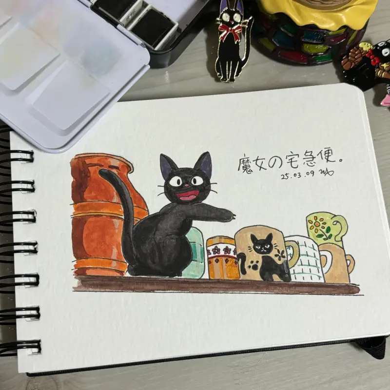 마녀배달부키키의 한 장면을 그렸어요!