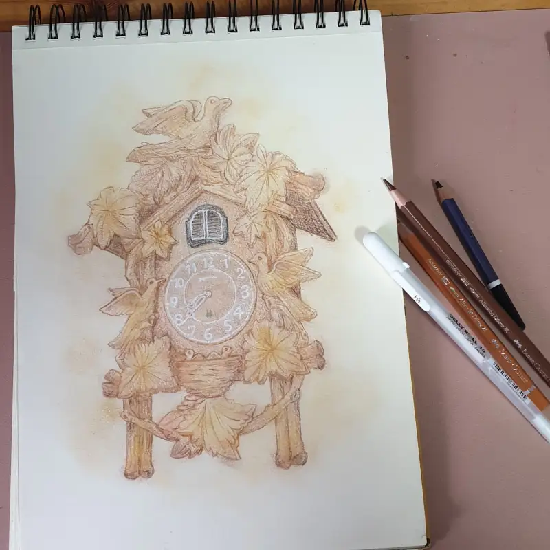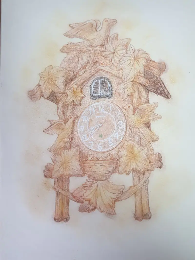 그때 그시절  다수의 집집마다 있던  뻐꾸기 시계를 그려보았습니다. 저희집엔 아직 있습니다.....30년도 넘었네요..ㅎㅎ