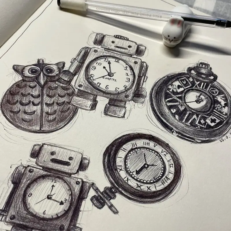 앤틱한 시계들을 볼펜으로 그려보았어요.