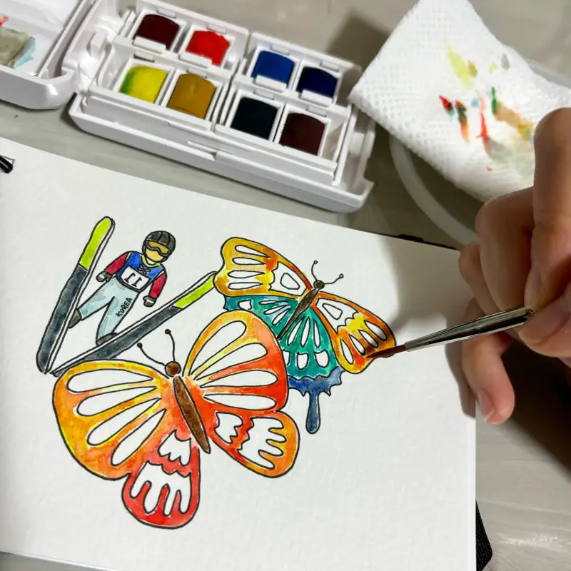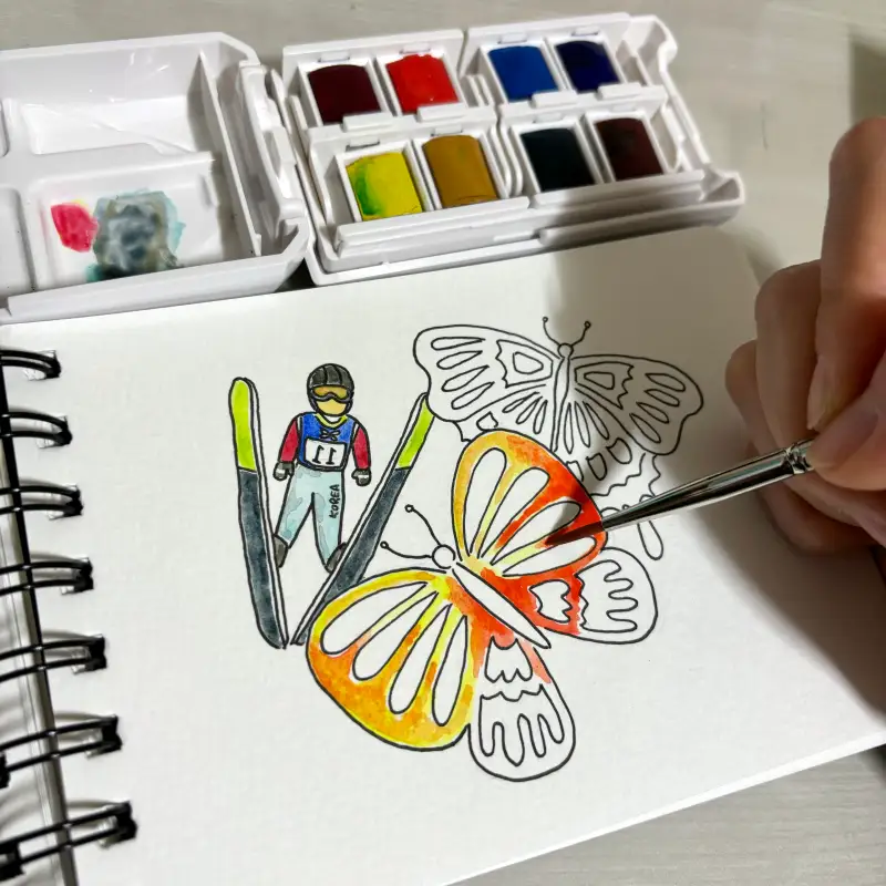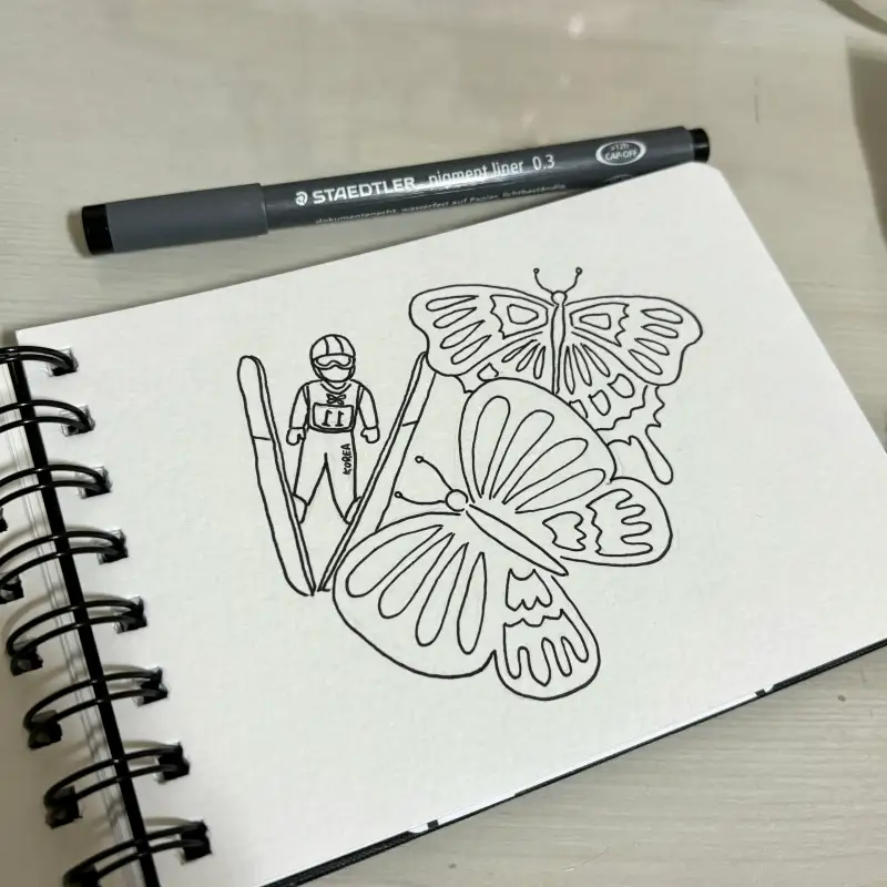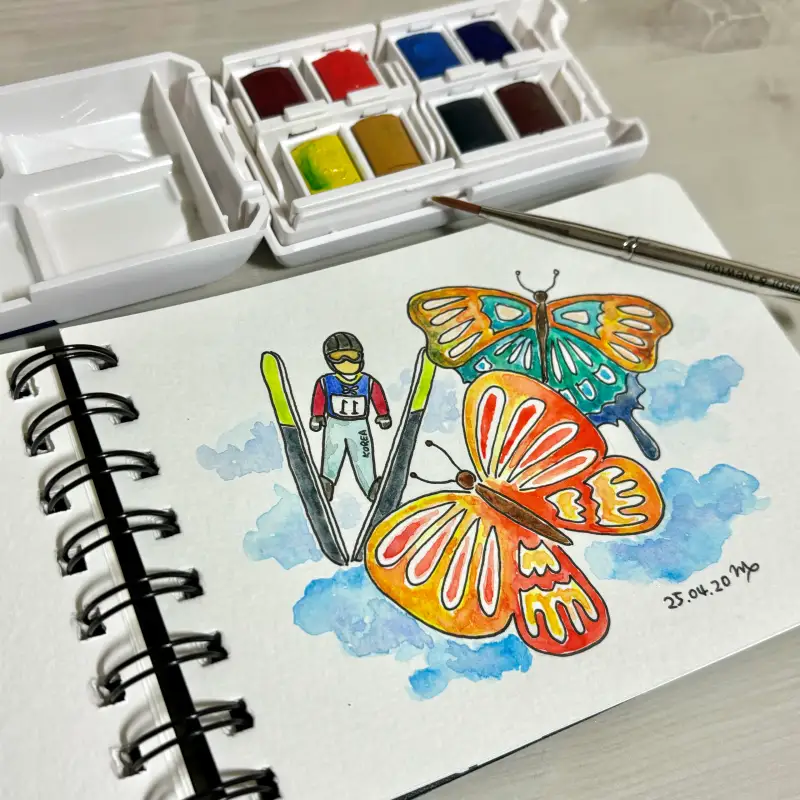 ๊ตญ๊ฐ€๋Œ€ํ‘œ์˜ ์Šคํ‚ค์ ํ”„์™€ ๋‚˜๋น„๋ฅผ ํ•จ๊ป˜ ๊ทธ๋ ค๋ดค๋Š”๋ฐ