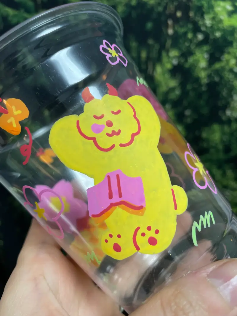투명한 컵에도 한 번 그려봤답니다. 유리, 목재, 금속 등