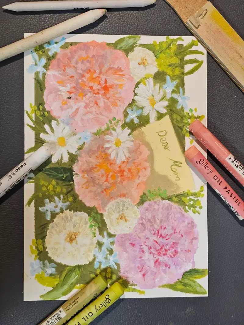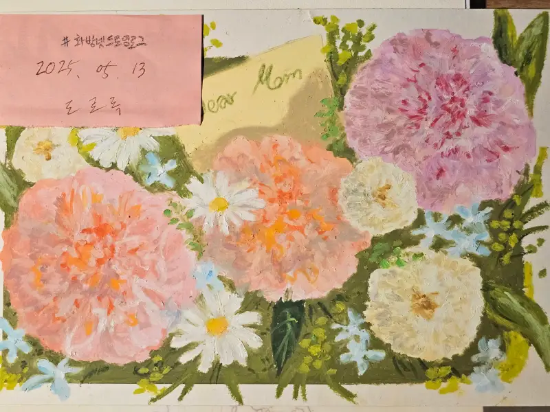 몇 년 전 밀랍플라워박스를 너무 마음에들어하셨던게 기억나서 이번엔 플라워박스그림으로 용돈과 함께 드리기로 했다.